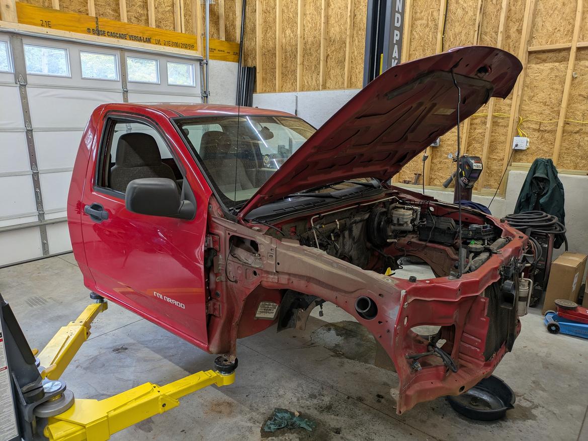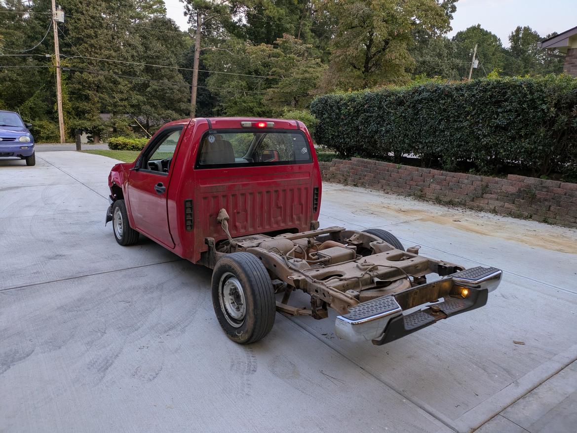 Got in on the fun tonight. The little red (express?) Colorado is now bedless, fenderless, bumperless and free of coolant. It also has lots of dirt where Midwest cars have rust.