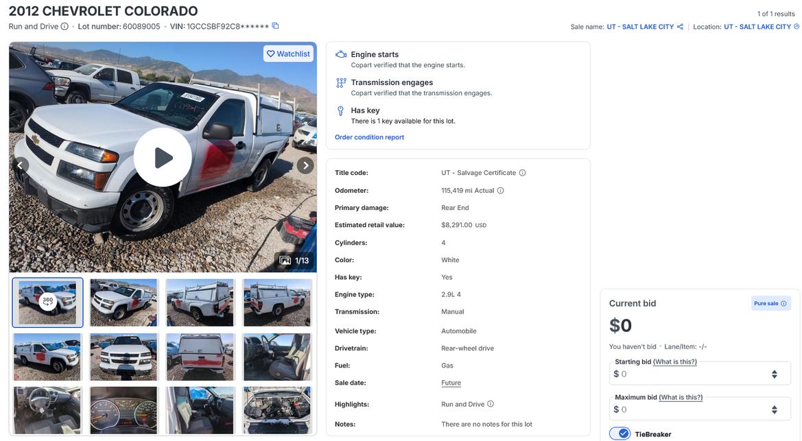 Just so you know, you're causing trouble here. I've had to contact Copart about my suspended account. Apparently not logging on for 5 years does that. This is the only manual trans Colorado within 1000 miles of me: