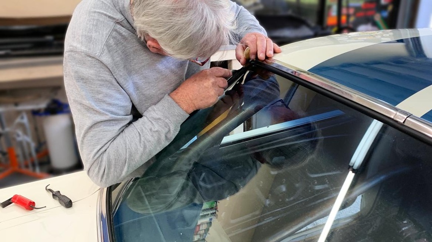 To better manage temperatures inside the cabin of our Mustang vintage racer, we install heat shielding from DEI.
