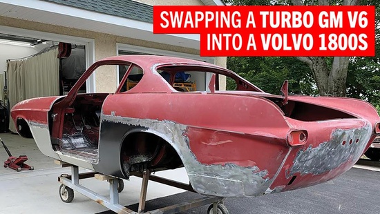 The new heart going into this Volvo 1800 resto-mod? A turbocharged GM 3600 V6 engine.