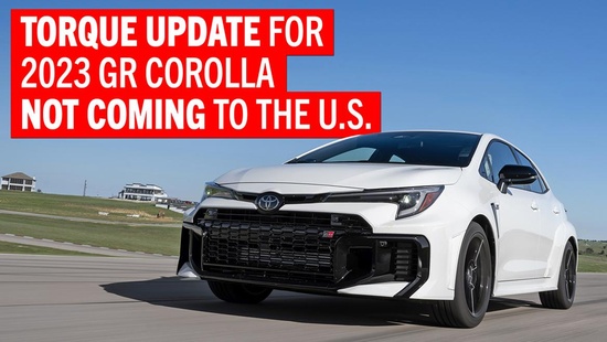 Toyota plans to roll out a software update for the 2023 GR Corolla that will increase torque to 295 lb.-ft. of torque, but not for the U.S. market.
